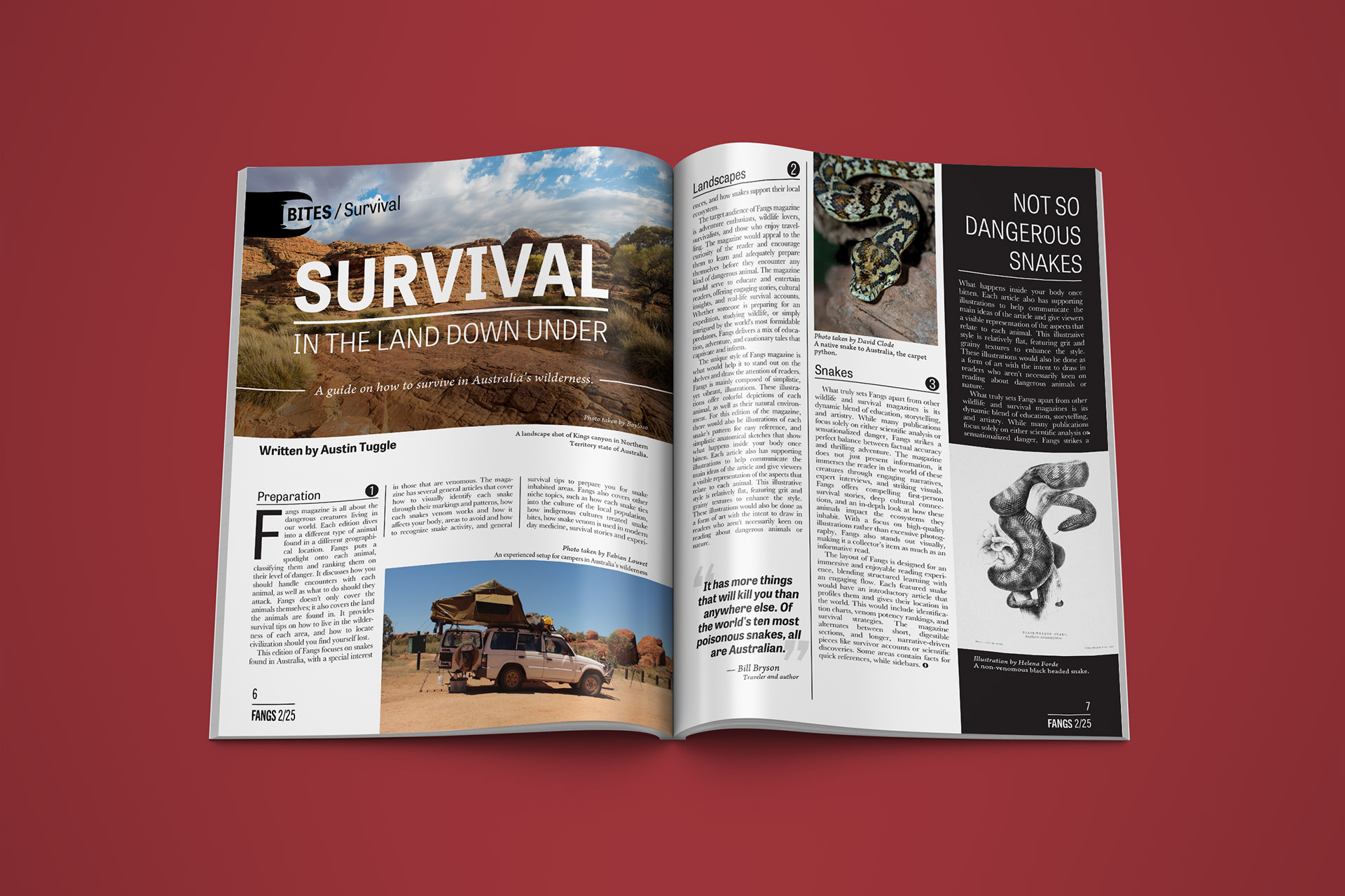 This project required the creation of a full magazine, including departments, shorts, a feature well, and advertisements. A lot of research and development went into the process of designing this magazine in order to keep it consistent with standard magazine design practices.